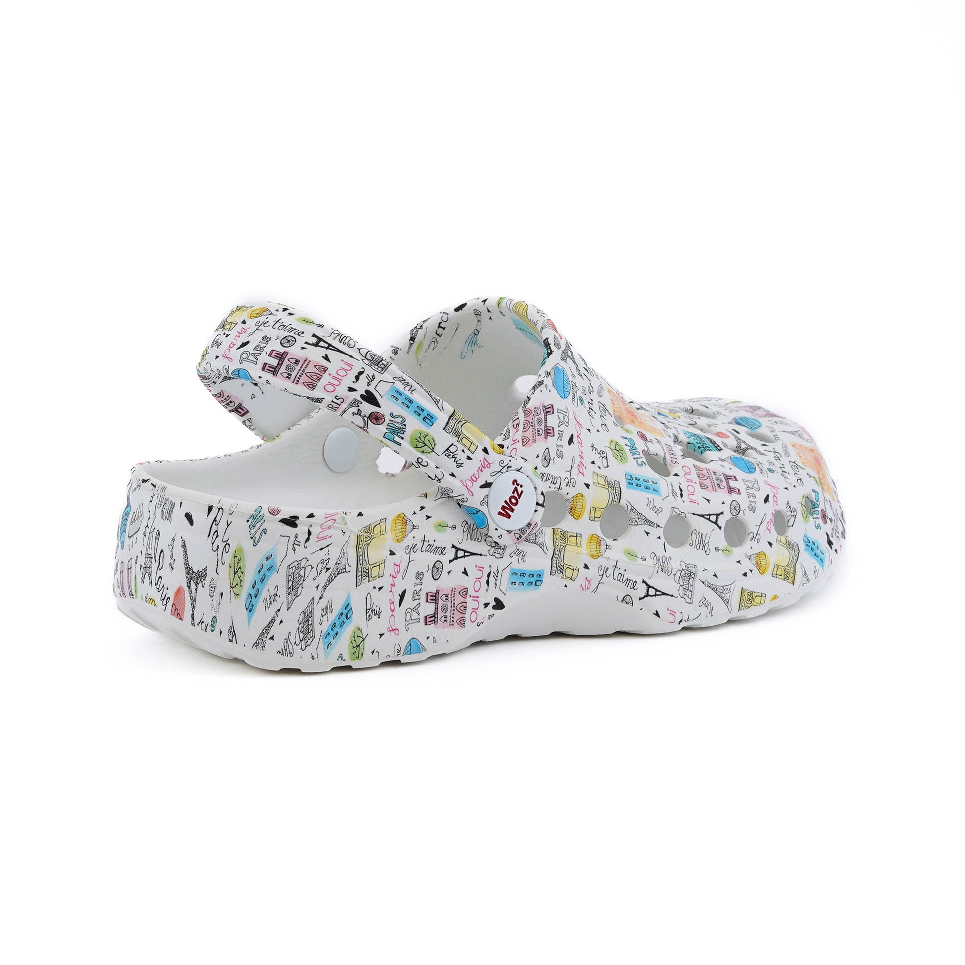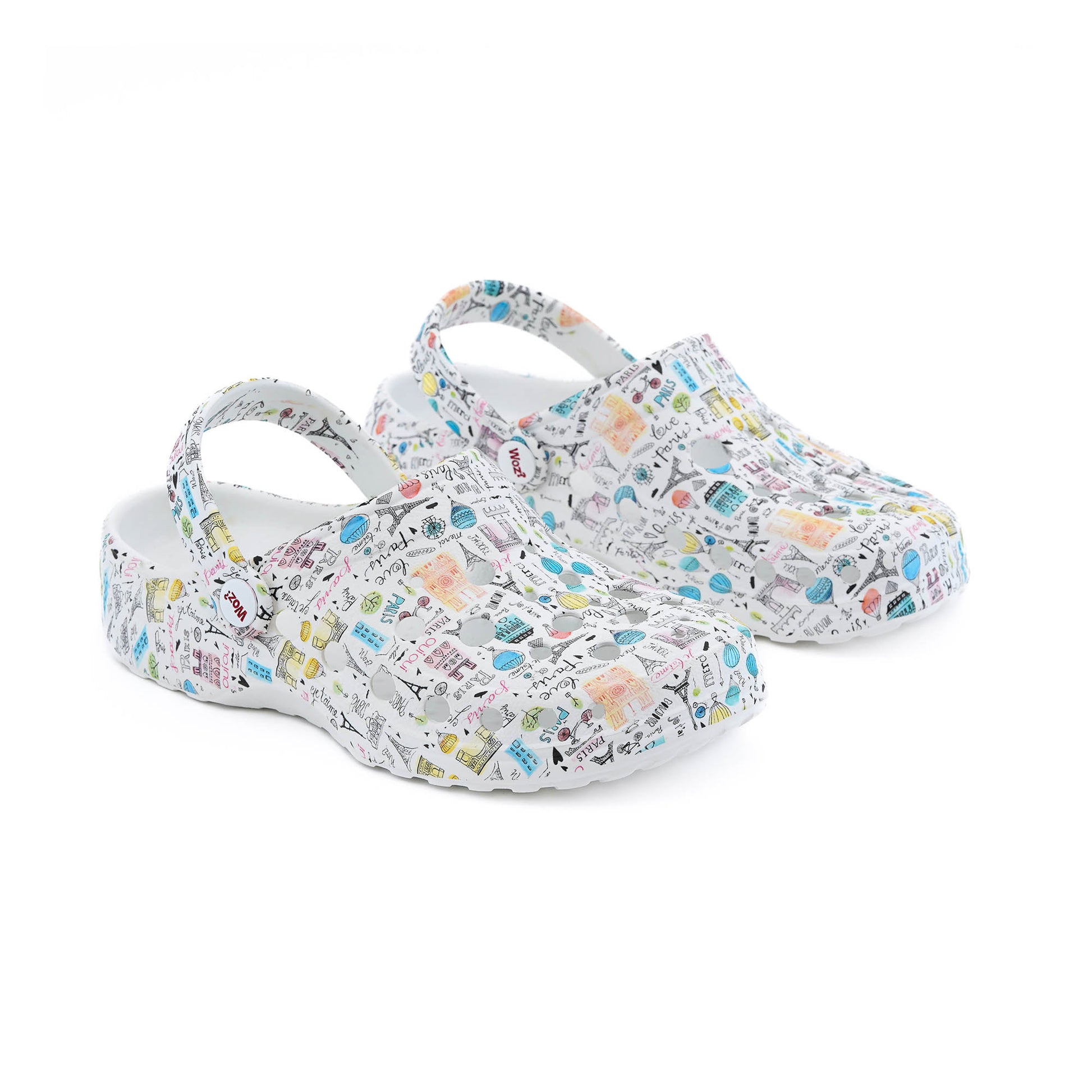 Stylish, lightweight and flexible clogs in Paris print from Woz. A must have for everyday wear, comfortable with excellent grip. Easy to clean. Designed in Italy.