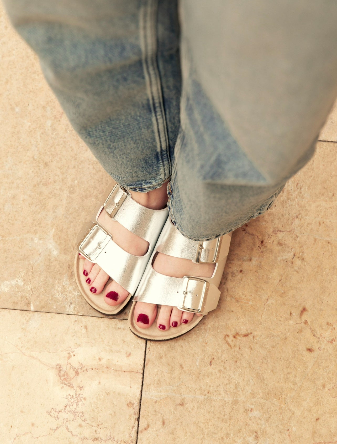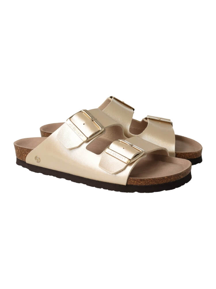 Experience ultimate comfort and protection while walking in our Honolulu Shiny Gold Sandals, featuring adjustable buckles, an anatomical cork and foam insole, and a synthetic vegan upper approved by PETA. Our sandals are designed and manufactured in our sustainable Elche factories using local suppliers, underlining our commitment to environmental responsibility. The anatomical insole offers superior support, reduces pressure, improves alignment and stabilization, and prevents injuries, making our sandals the perfect choice for those seeking both comfort and style.