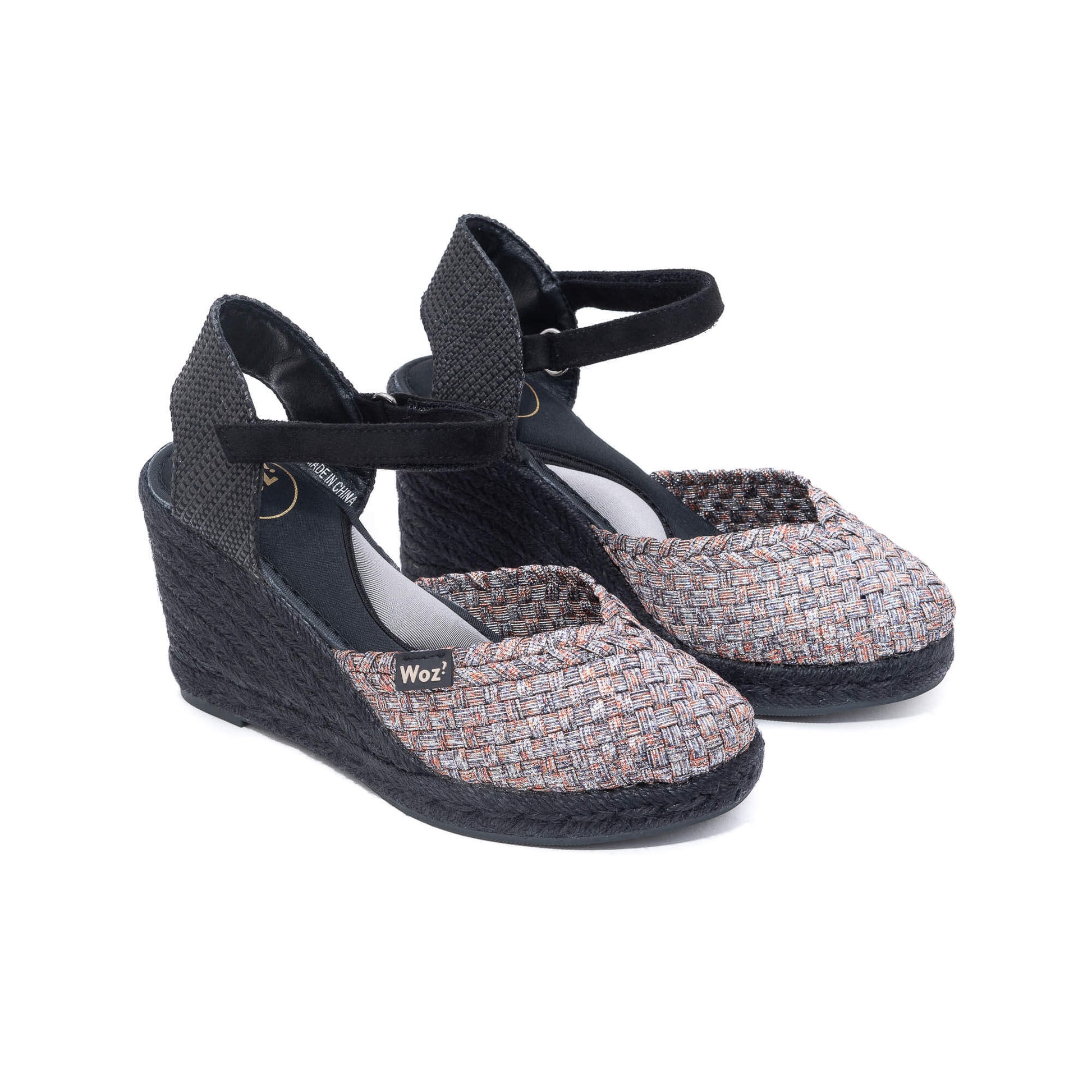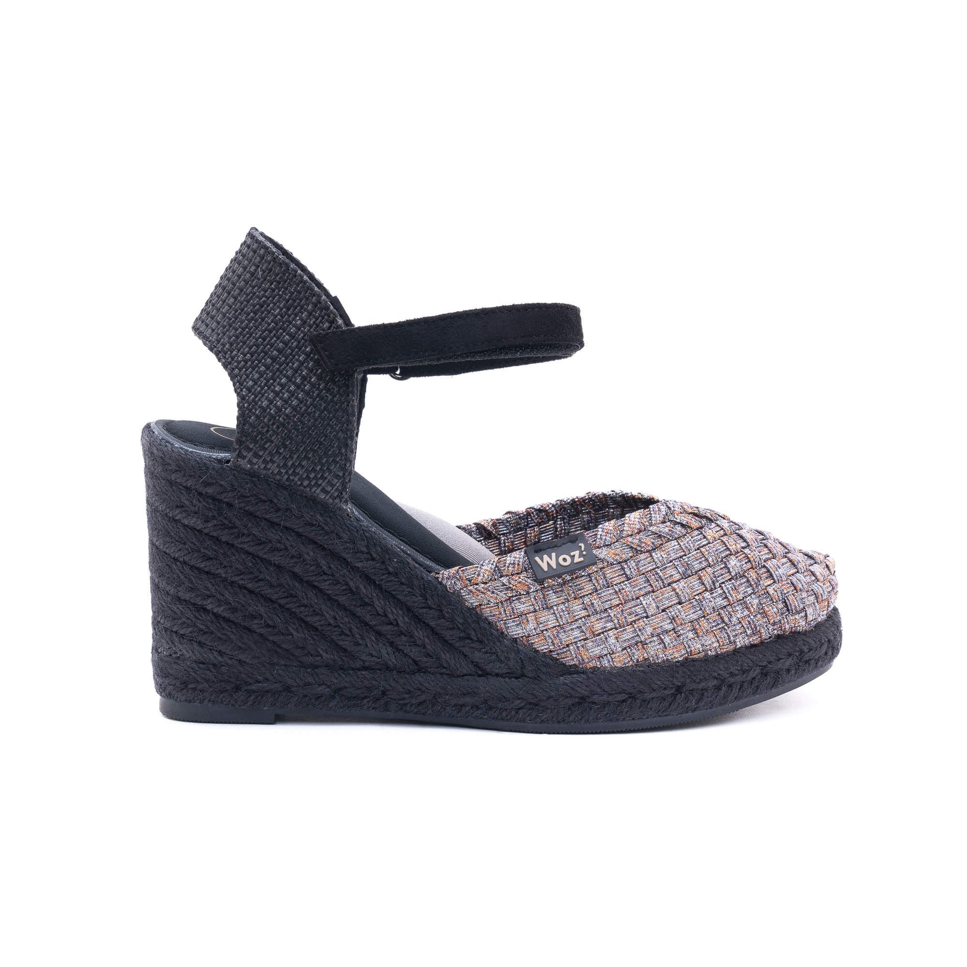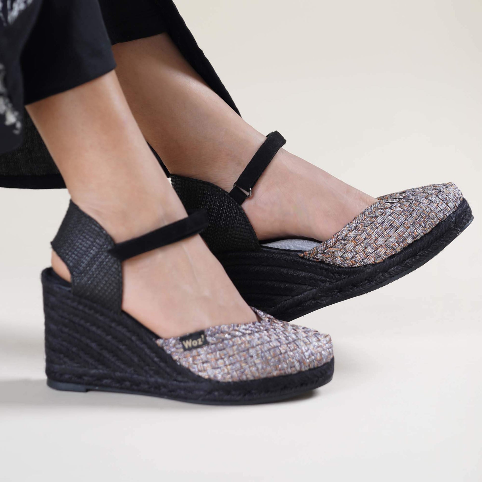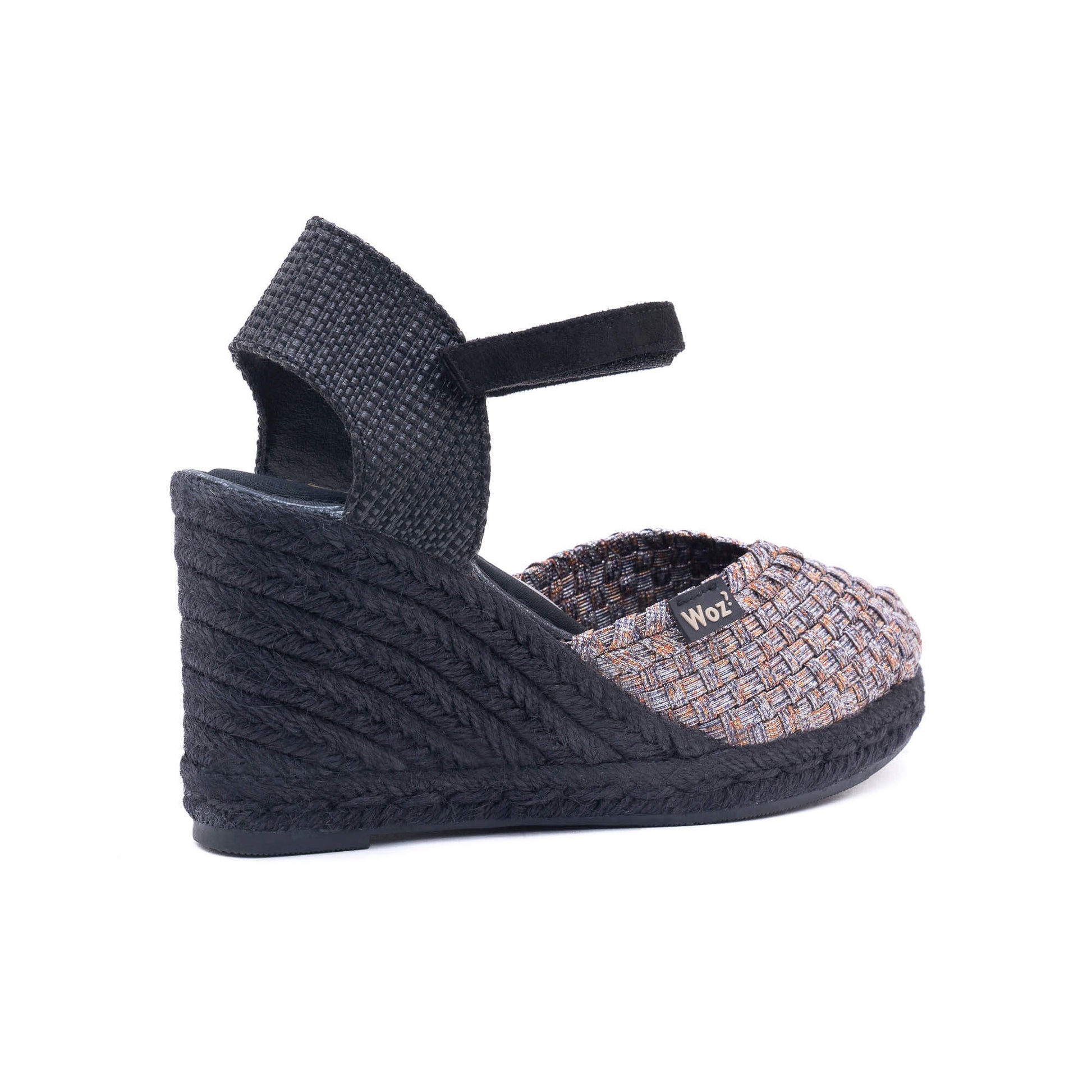 Heel covered with black braided rope.