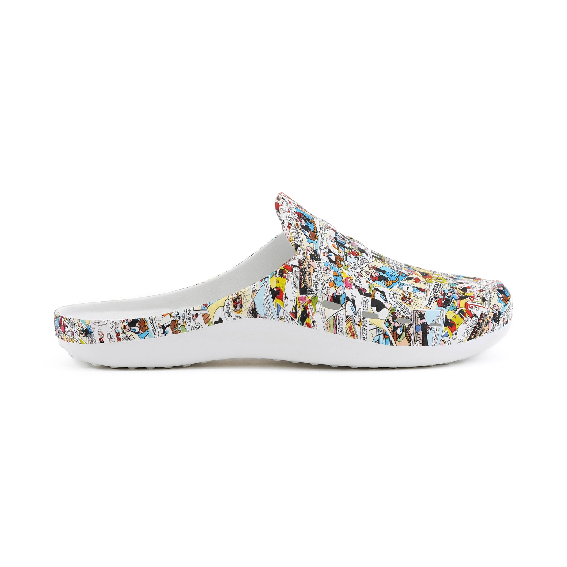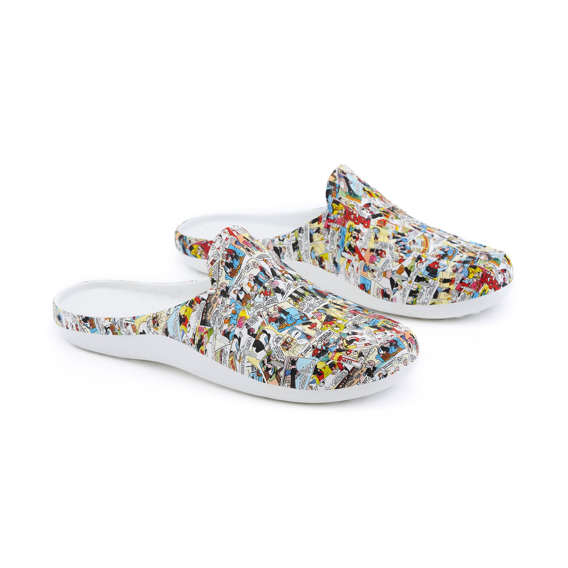 Comfortable lightweight slip ons in Popeye comix print from Woz. EVA insole and outsole, Anti Odor. A must have for every day wear. Easy to Clean. Designed in Italy
