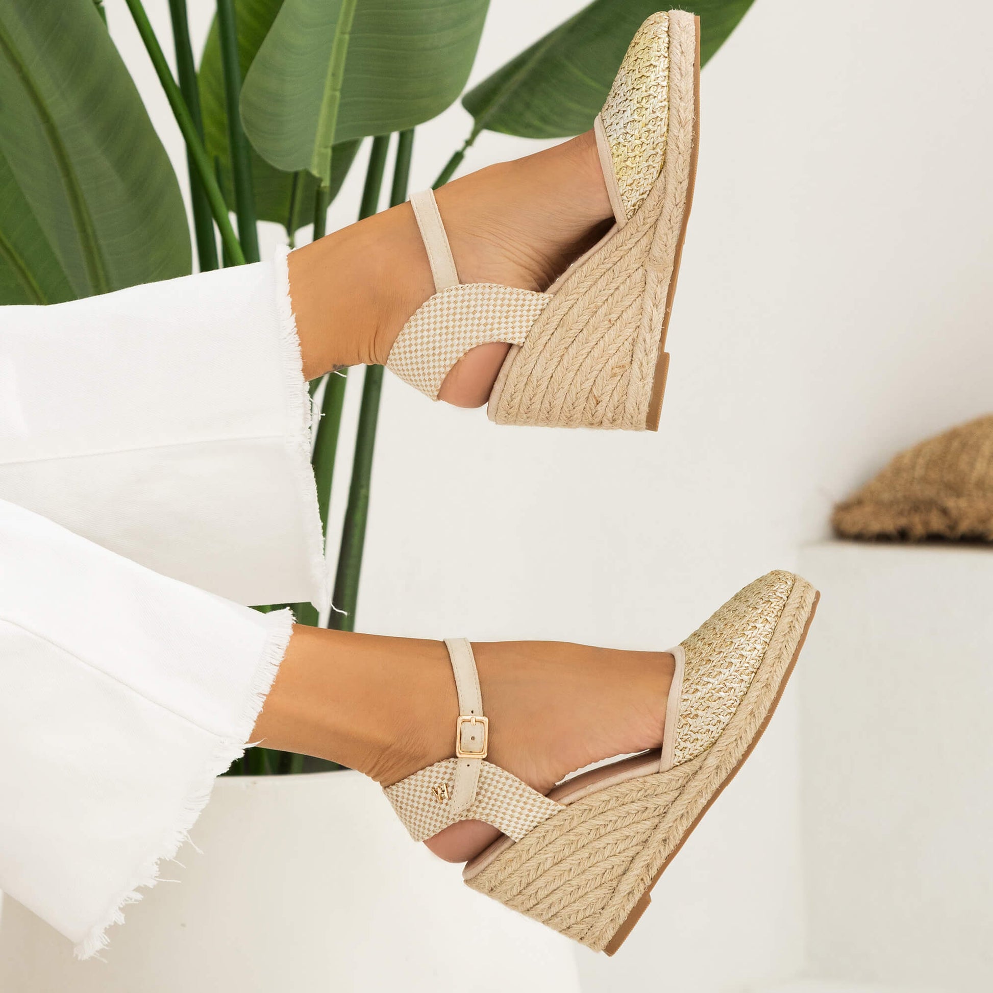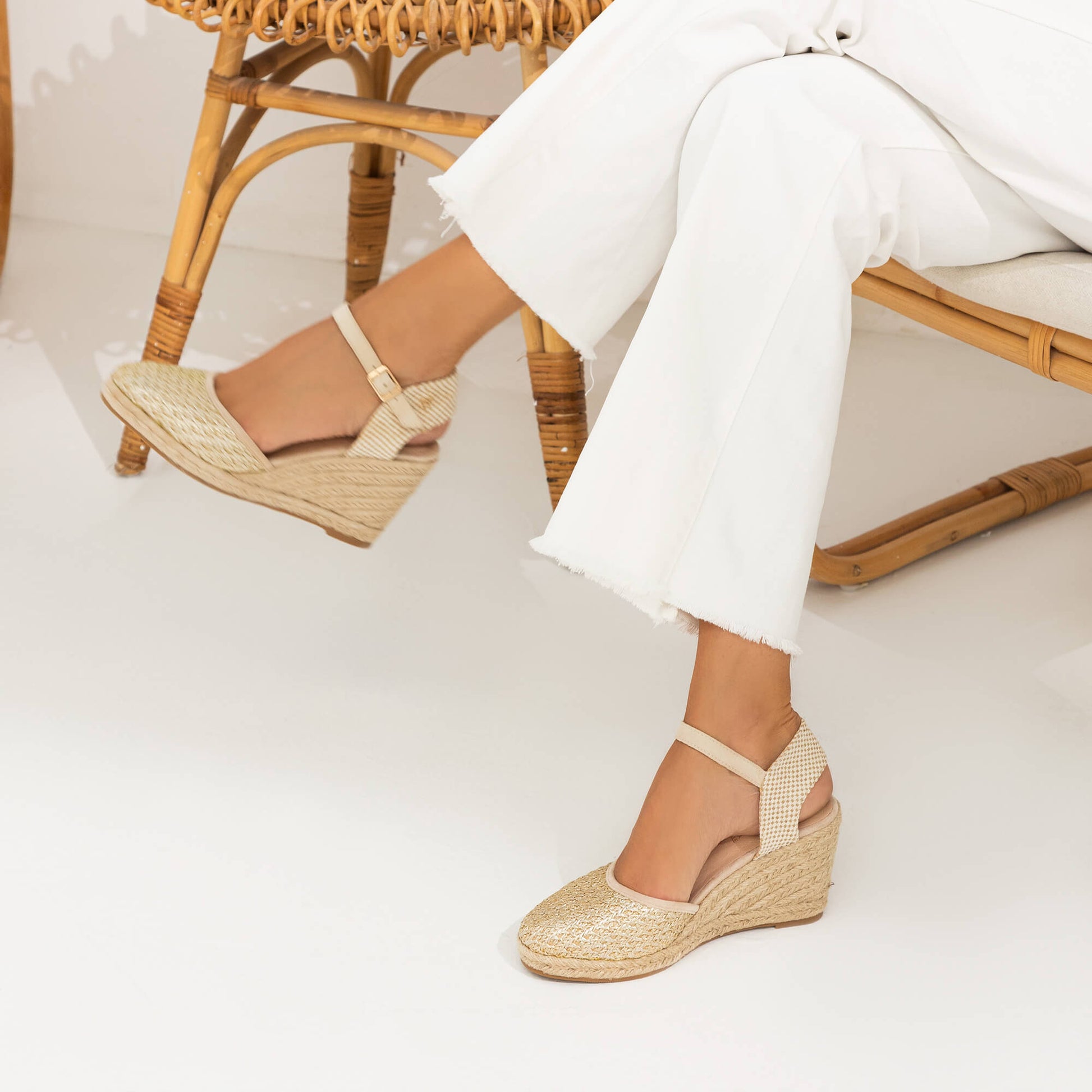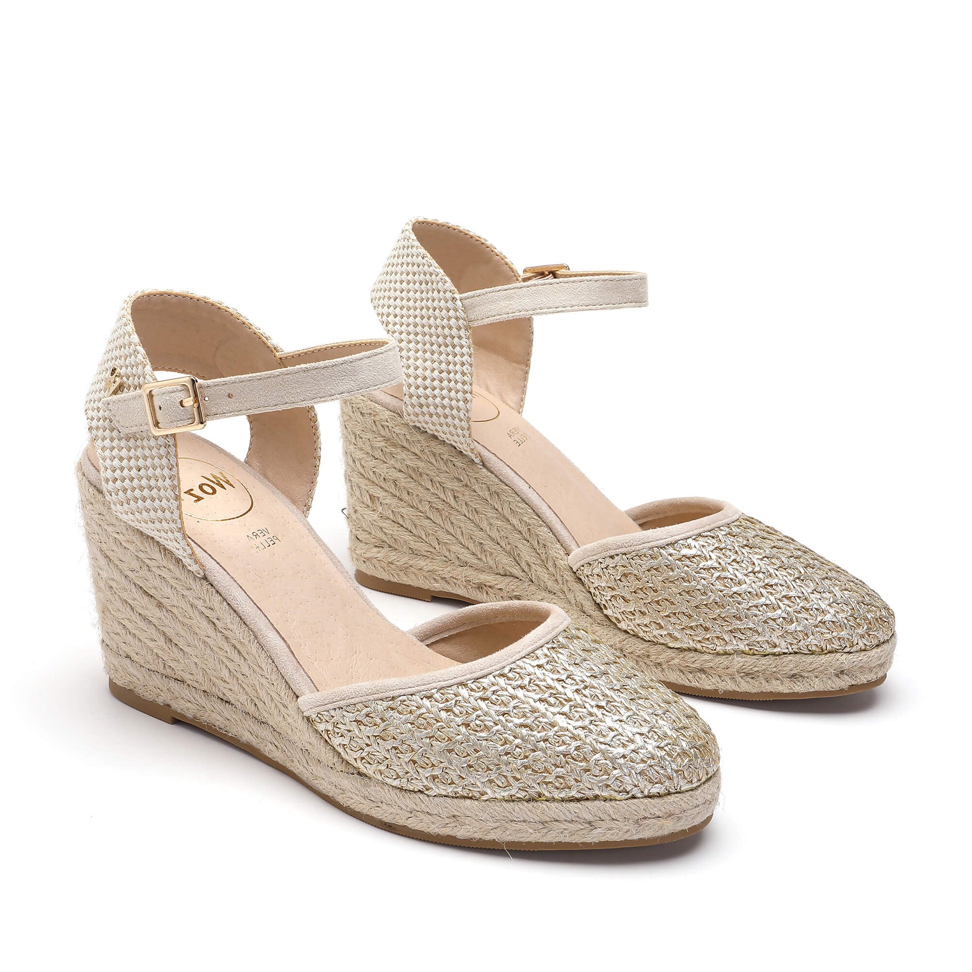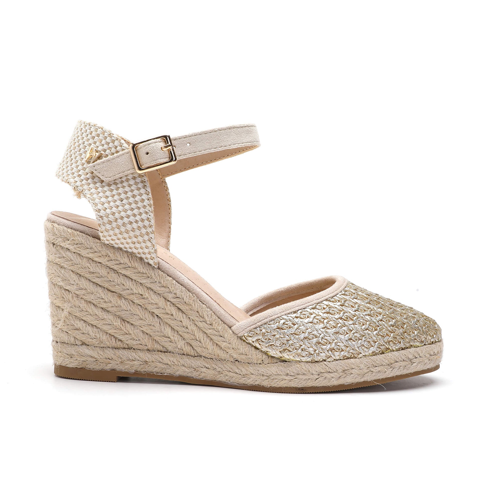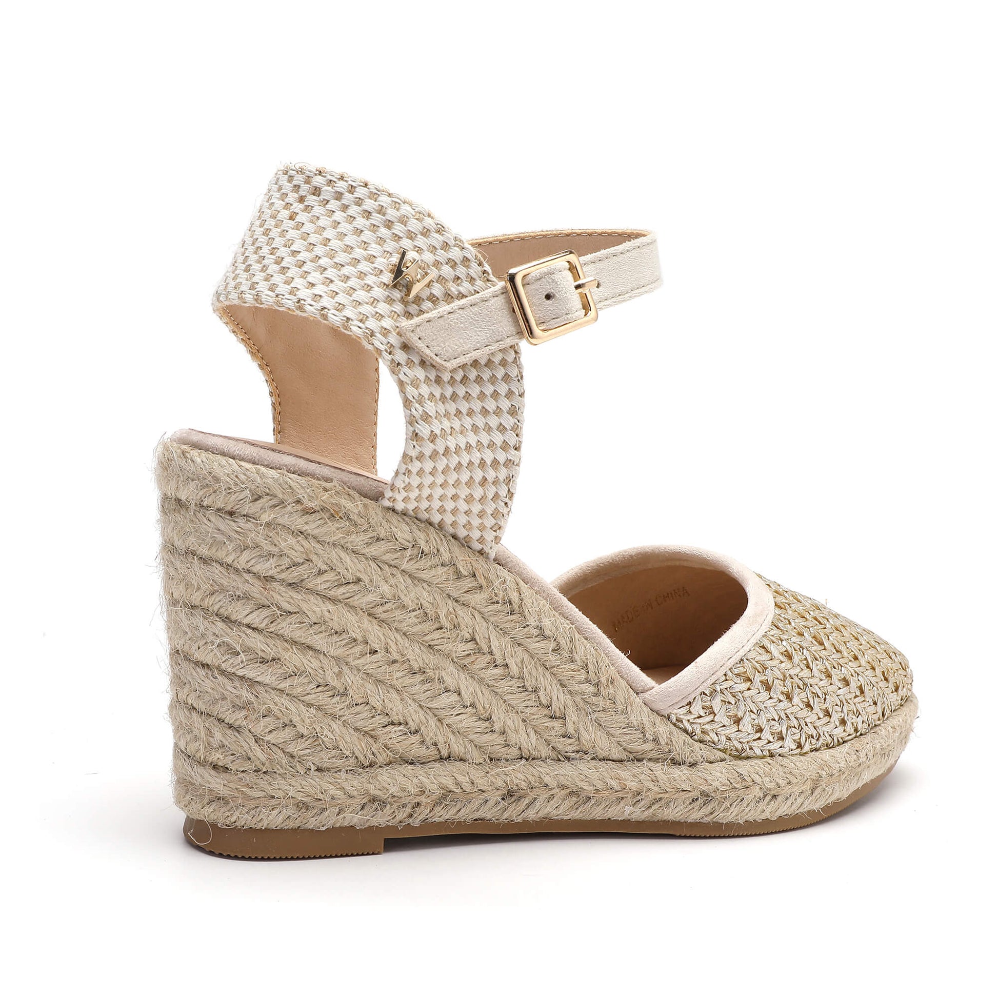 Expertly crafted from raffia, this stylish espadrille features a buckle fastening ankle strap, soft padded footbed, and a 7 cm heel covered with natural beige braided rope. Designed in Italy for both fashion and comfort, it's the perfect addition to your wardrobe.