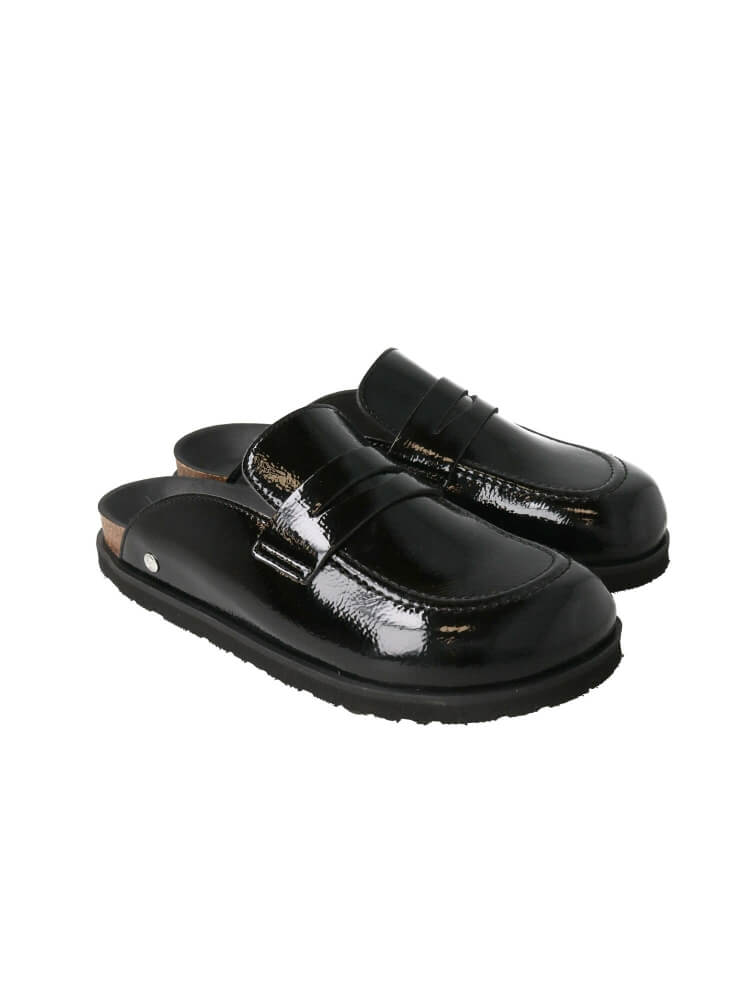 Clog with anatomical sole made of beige genuine leather and sole lined with sheep wool. Adjustable with a buckle. Sole with a height of 2 cm.