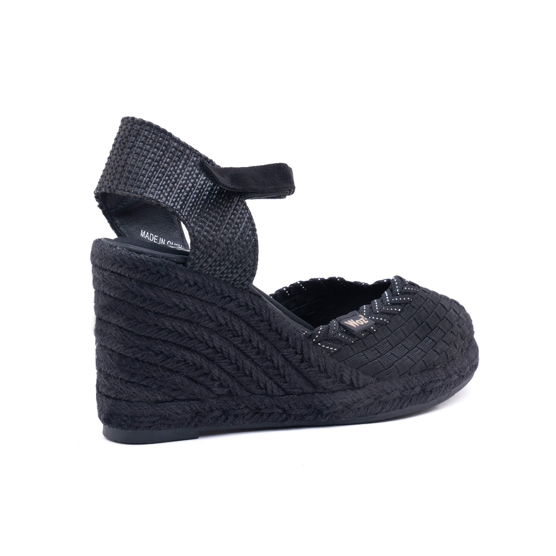 Heel covered with black braided rope.