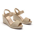 Add a sophisticated touch to your wardrobe with the Celine Espadrille. Crafted from breathable raffia, this style features a 7 cm heel covered with braided jute and a velcro adjustable strap around the ankle for a secure fit.