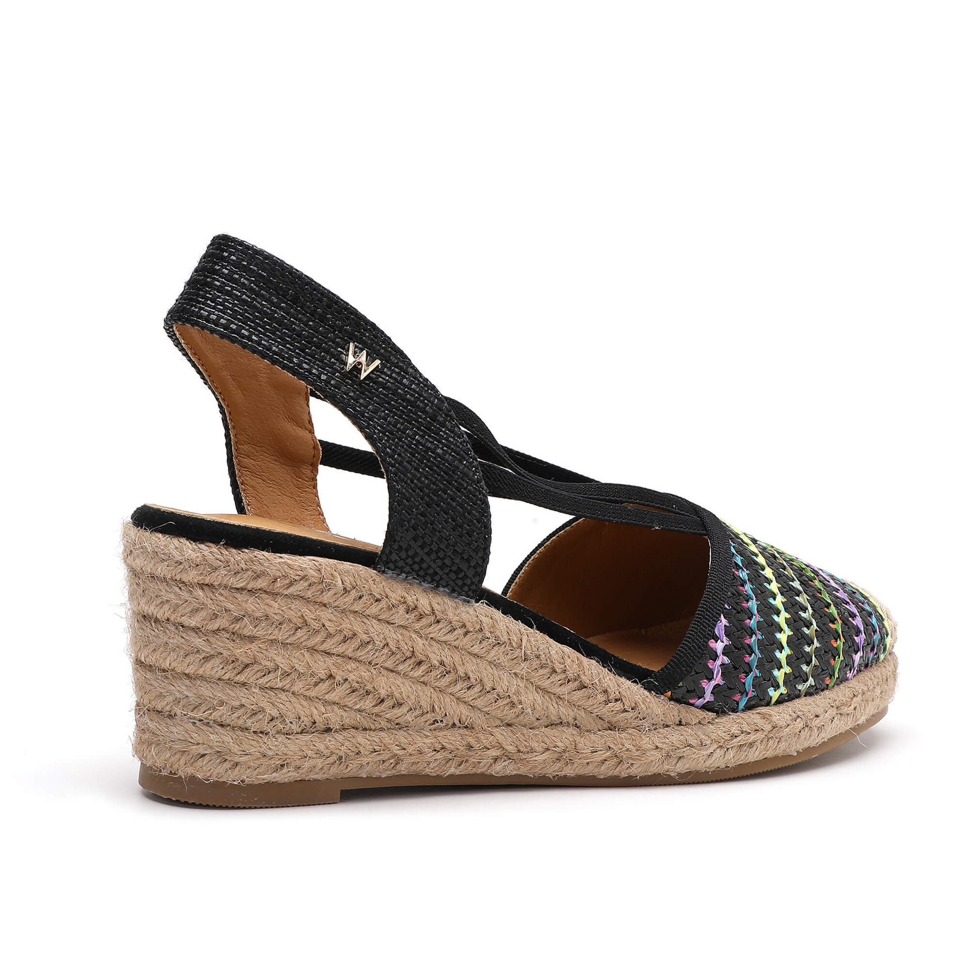The Emily Beige Espadrille puts a modern twist on a traditional style. Crafted with a raffia upper and two elastic straps for a secure fit, this shoe stands out with a 5 cm heel covered in braided jute for a unique look. Great for any occasion!