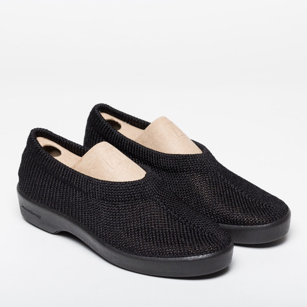 A classic style from Arcopedico, will be your go-to comfort shoe this season by keeping your feet cool and dry. Designed with a breathable mesh material upper in black color. Ultralight PU sole is shock absorbing, protecting your joints and vertebrae from impact. Heel height 3 cm. Elastic around the ankle keeps your foot secure and allows ease in slipping on and off.