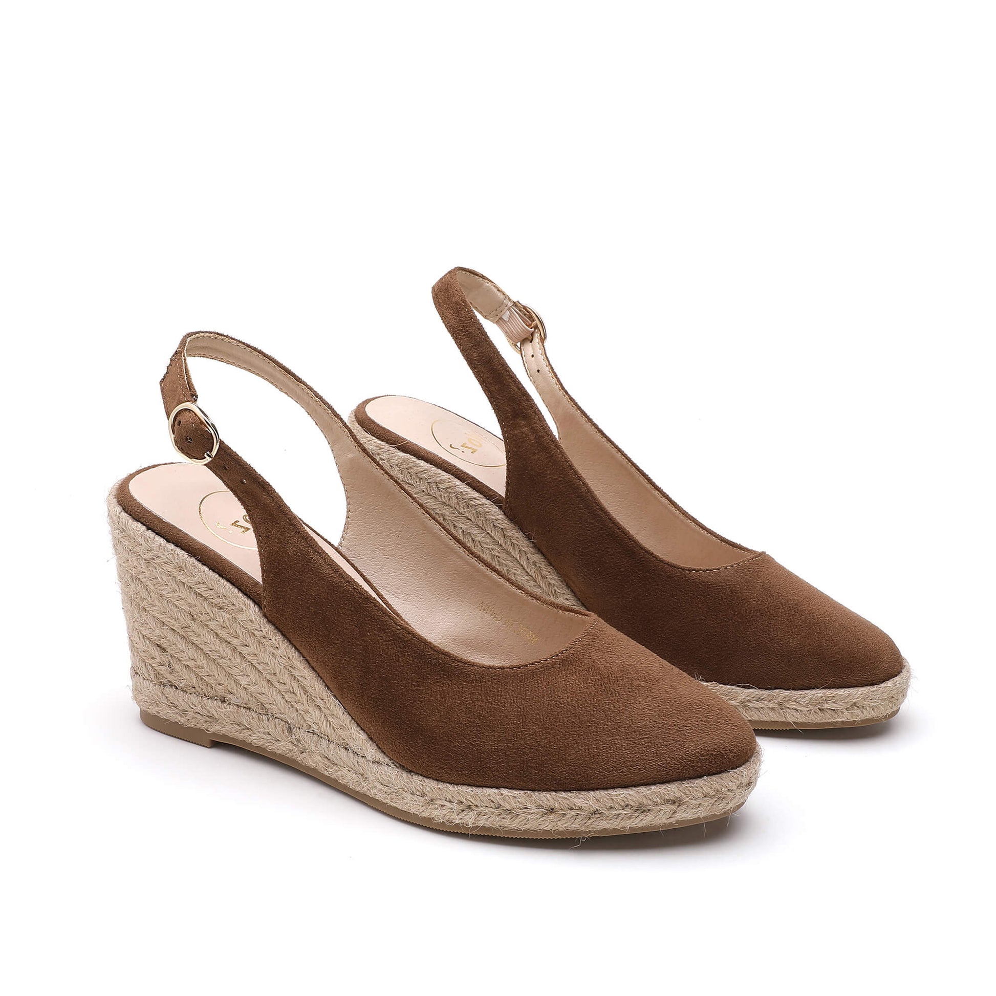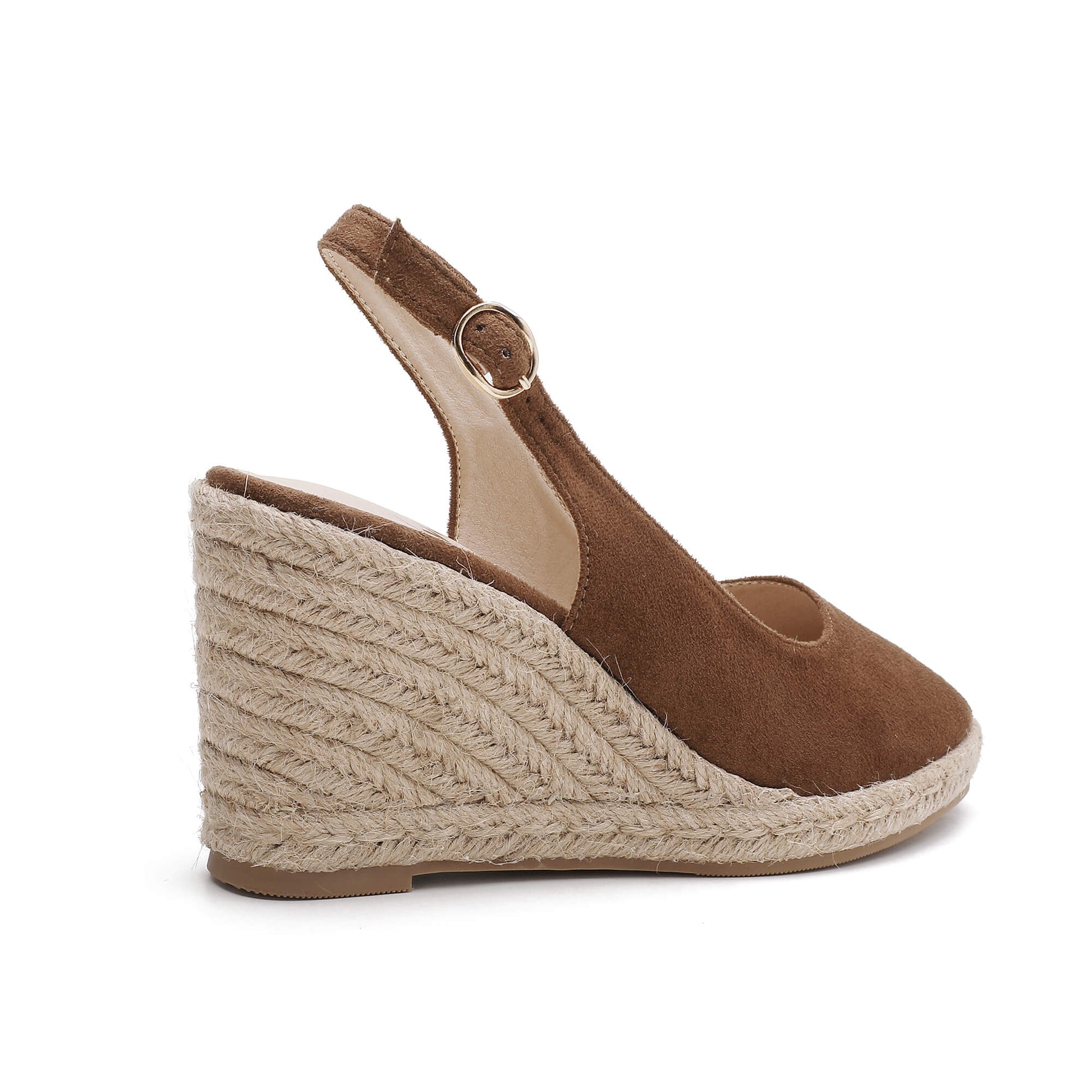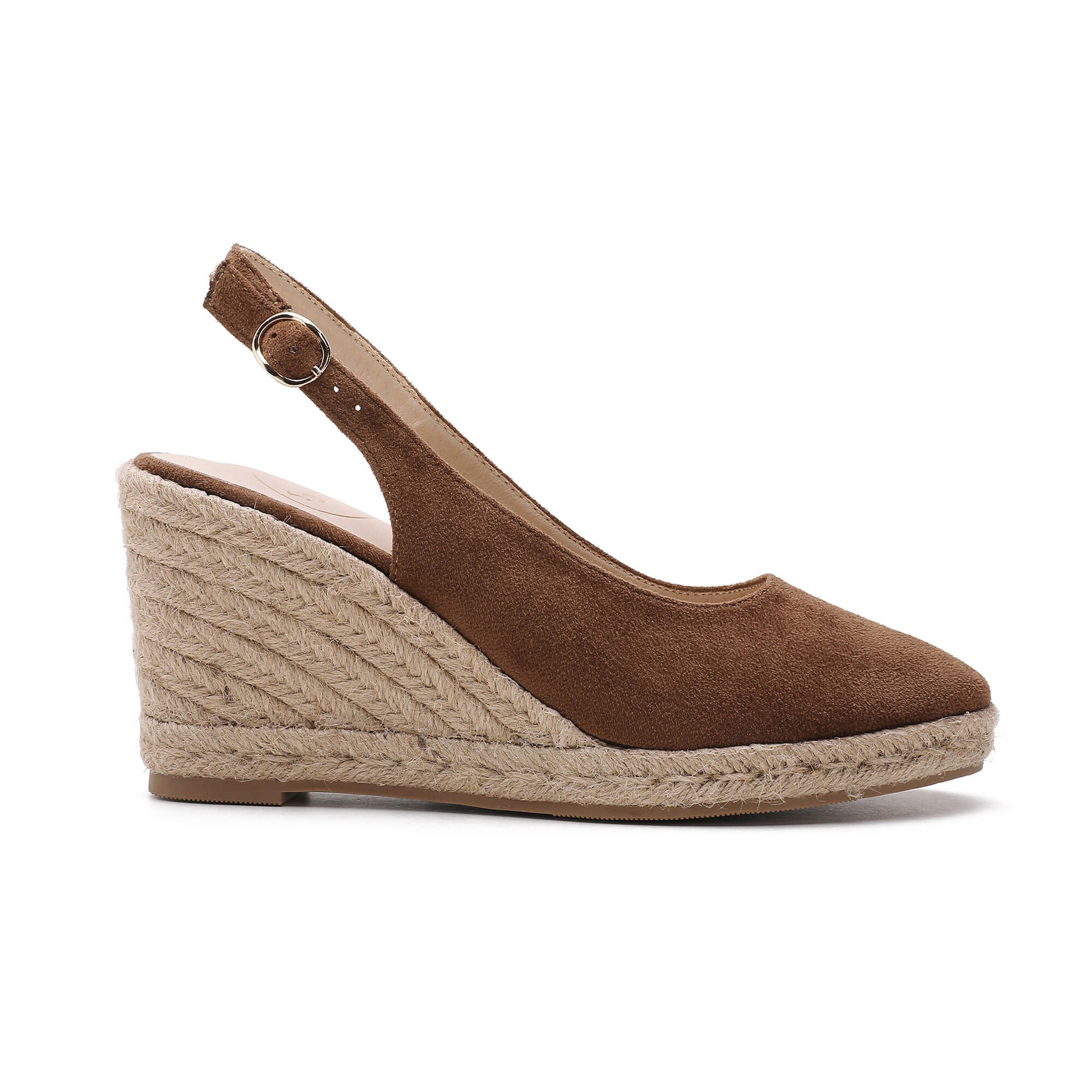 This stylish espadrille in a stunning tobacco suede color features a soft padded footbed that offers a relaxed and comfortable feel while walking. The heel, measuring 7 cm, is covered with beige braided jute for an extra touch of elegance. Designed in Italy by expert craftsmen, these shoes are both fashionable and functional.