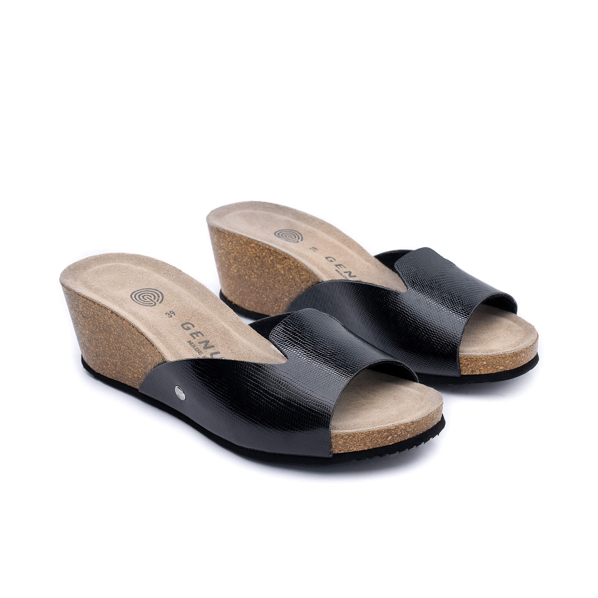Crafted with synthetic material, these Genuins bio wedge sandals are comfortable and supportive. The leather-lined, contoured footbed molds to the shape of the foot for a custom fit and enhanced cushioning. Featuring a 7cm heel, the EVA outsole is lightweight yet provides shock-absorbing and long-lasting support. It features an anatomical plant made of soft cork, and is crafted in Spain.